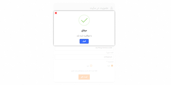 در صورت کامل کردن فرم های بالا، ثبت نام شما با موفقیت صورت می گیرد.